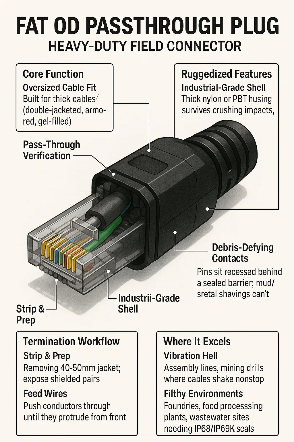 Överdimensionerad kabelpassning: Byggd för tjocka kablar (dubbeljackad, pansrad, gelfylld) som inte passar standardproppar.