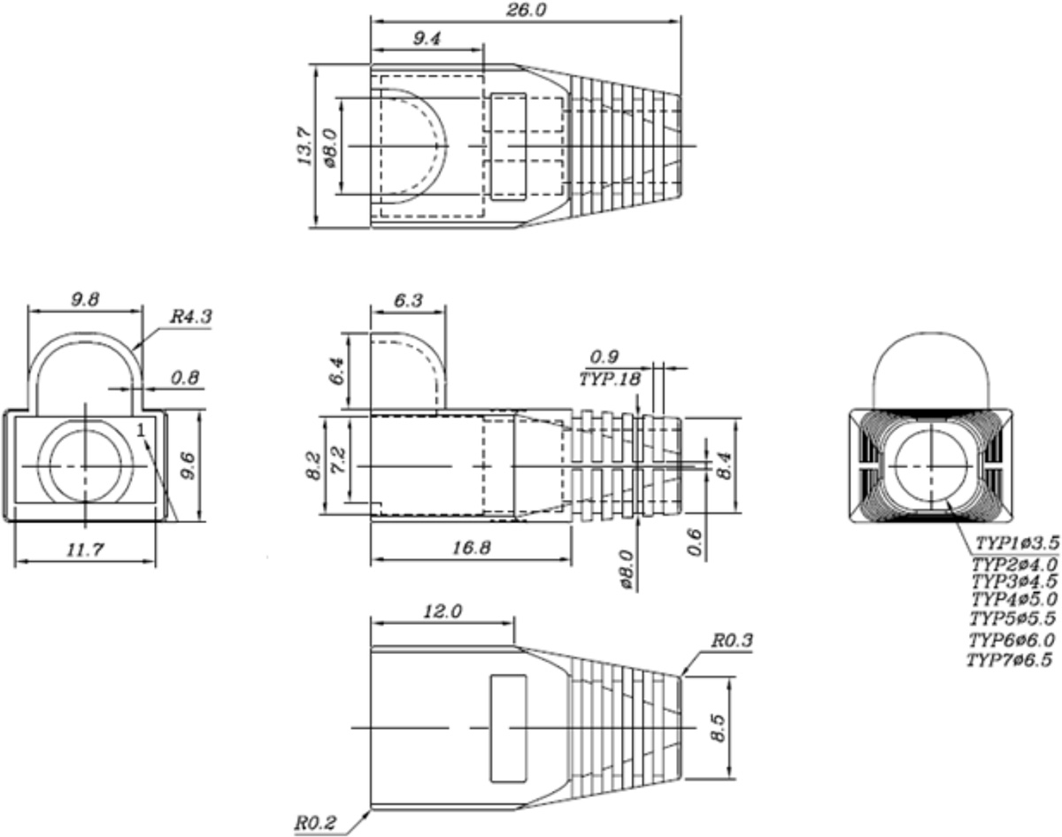 Denna pluggsko är den traditionella typen med OD från 3,5 mm till 6,5 mm. Används för Cat.6A/Cat.6/Cat.5e rund kabel. Vi har kompletta produktionslinjer med flexibel ledtid .